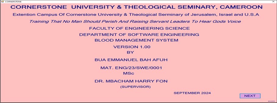 Bridging Gaps in Blood Transfusion Services through Collaborative Healthcare Systems in Cameroon: The Cornerstone University Blood Management System version 1.0